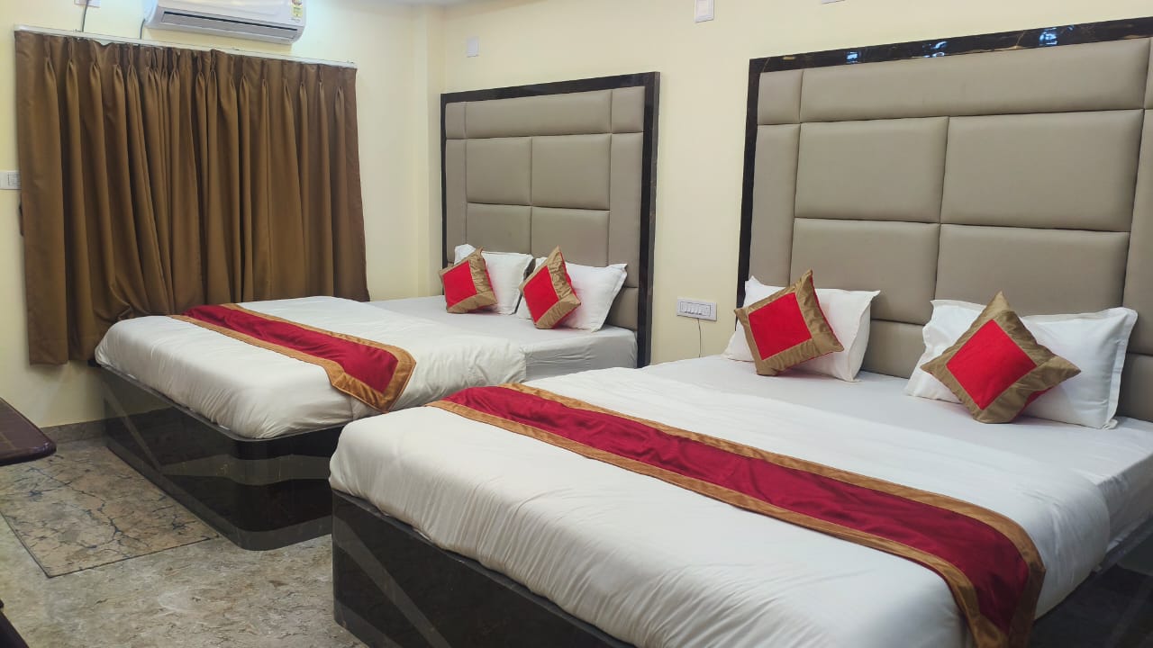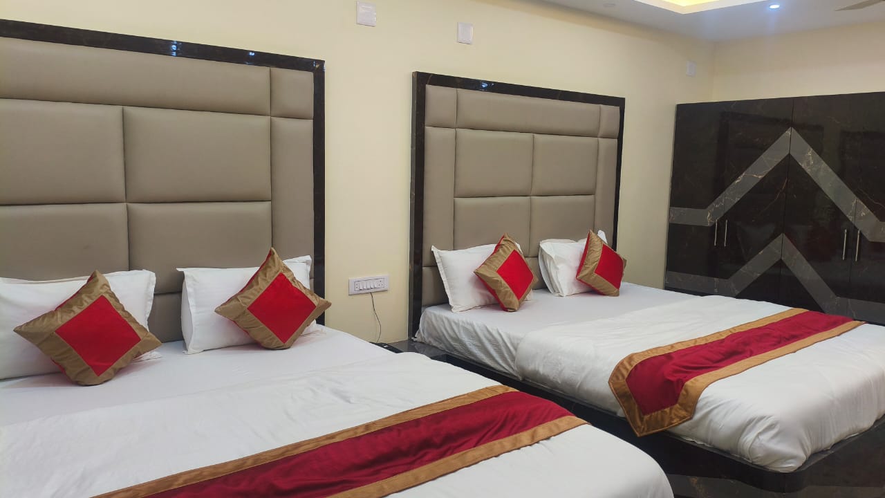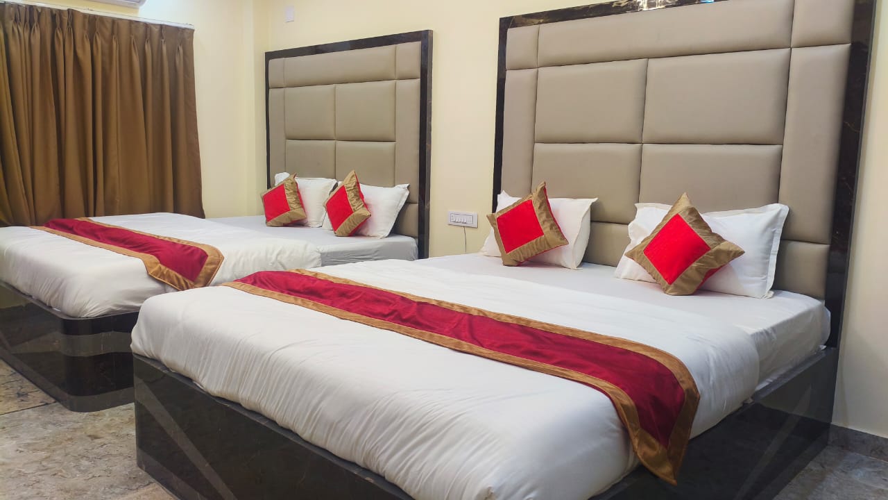 This generously sized room features four comfortable beds, making it ideal for larger groups without compromising on personal space. The room is fully air-conditioned, ensuring a cool and pleasant environment even during warmer days. Thoughtfully designed interiors, soothing color tones, and ample lighting create a welcoming and peaceful atmosphere for your stay.